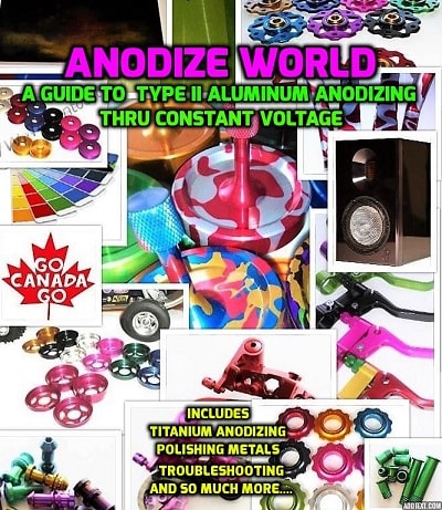 I finished the manual on type 2 anodizing thru constant voltage. This is much more comprehensive than any online information and will have step by step guides, troubleshooting and complete setup details. Table of Contents Introduction 2 Chapter One - Equipment 3 Chapter Two – Setting up acid tank 4 Chapter Three – Prepping and racking 5-7 Chapter Four - Anodizing 8-10 Chapter Five - Dyes 11-13 Chapter Six - Sealant 14 Chapter Seven – Finishing and Polish 15-16 Chapter Eight – Titanium Anodizing 17-19 Voltage Relationship to Pore Density 20 Aluminum Alloys 20-21 Acids 22 Specific Gravity – Acid Density 23-24 Definitions 25 Troubleshooting 26 Frequently Asked Questions 27 Constant Amperage 28 Quick Chart 29 Drawings 30 More information is posted on www.anodizeworld.com |