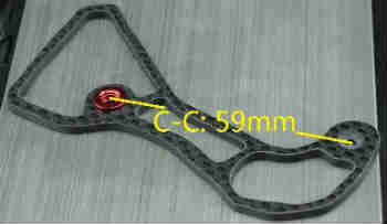 Made of Toray T700 high modulus carbon fiber. Full 3K finish. 59mm bolt hole center. Please check this measurement on your pulley center. This is the inside plate only and is not the plate that is attached to the body of the derailleur. 3.7 grams |