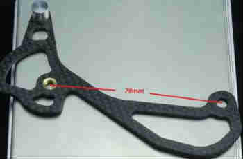 Made of Toray T700 high modulus carbon fiber. Full 3K finish. 79mm bolt hole center. Please check this measurement on your pulley center. This is the inside plate only and is not the plate that is attached to the body of the derailleur. 7.7 grams |