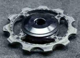 Made of Toray T700 high modulus carbon fiber Monocoque construction, Full Carbon 3K finish 11T, Approx weight: 5grams. Save 80% over original pulley Ceramic bearing. Free Spinning. Increases the gear-shifting efficiency by reducingpressure applied to the rear derailleur Fits with most Rear Derailleurs : Shimano Type. Price on these is for ONE pulley |