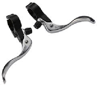 Top mount levers For use with linear pull brakes (V-brakes) Forged aluminum lever / Cast aluminum bracket Hinged clamp style Red Q.R Knob (Quick release mechanism) Reach adjustment Weights 124 grams/pair |