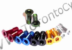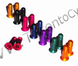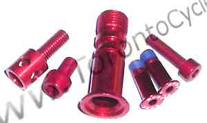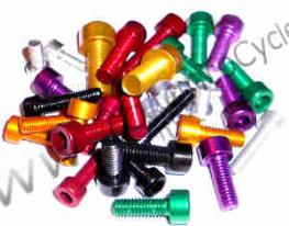 This is for a Mini alloy aluminum bolt kit. These bolts replace your little steel bolts on your derailleur and brakes. you get: 2 m4x16mm, 4 m3x10mm, 4 m3x15mm and 4 m3x20mm. m4 pitch=.7, m3 pitch=.5 This is a universal kit, you get more than you need for the average bike. 6 grams for the set |