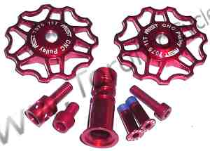 Campy Kits: Please check your derailleur to make sure it uses standard Shimano type pulleys.Please note this kit had 5 spoke pulleys. The jockey wheels are a bit different from the stock photo |