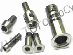 This is for an aluminium alloy derailleur adjustment bolt. This has m5 threads and will fit all Campy related systems. These are for use with derailleur cable only. 1.6 grams each m5 threads - 0.5 pitch Very fine threads. |