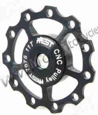 AEST 7075 Anodized aluminum jockey wheels. For use with all Shimano type systems. These have oversized sealed ball bearing for crisper shifting. Bearing size = 9mm ID -17mm OD - 5mm thick 19 grams for the set Please note: Side caps are matching color as in the photo. These bearings are steel shielded This sale is for the 4 slot version as shown in the photo. |