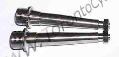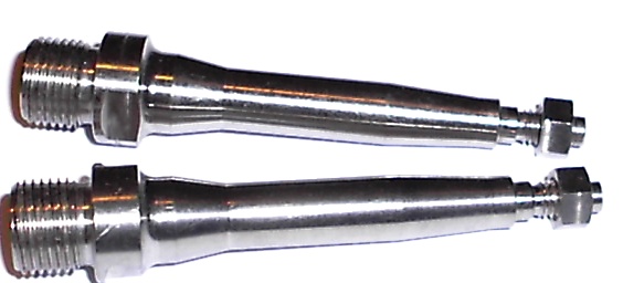 Aftermarket Replacement Titanium spindle set for SpeedPlay. Zero, X1 and X2. Extra long version. The end bolt is also posted and will be a separate purchase. Overall Length = 98mm 6mm end bearing race / 5mm threaded end. Uses a 8mm allen and 15mm wrench to tighten. 200lb weight limit. On these weight is relative. Since these are super long I cannot warranty breaking. 90 grams for the pair. |