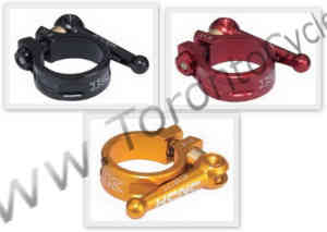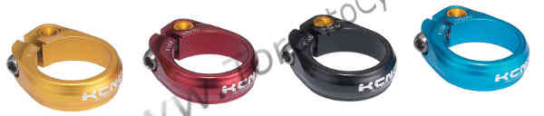 | KCNC Z6 QR Seat Clamp Fully cnc machined seatpost clamp, anodized 6061 alloy with a stainless steel stud and brass cam collar. Machined from 6061 Al alloy Hollow clamp lever - patented design. Stainless Steel clamp bolt Weight : 28g (31.8mm), 30g (34.9mm) |