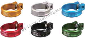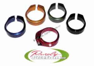 | This is for a Aluminum alloy seat post clamp. Includes Steel bolt. Ti bolt upgrades are available on the titanium Bolt page Sizes and colors are listed below. |