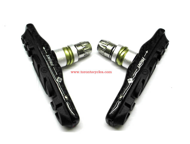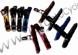For all types of bikes with threaded post type v-brakes or cyclocross brakes Aluminum hollow brake bracket to reduce weight Anodized finish Synthetic rubber insert brake pads Brake pad inserts length 72mm Weights 53 grams/pair |