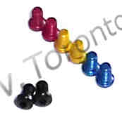 This is for a MTB V-brake kit. This will fit all standard V-brake systems including Avid, Tektro, Shimano.... You Get: 2 Brake post Studs, 2 Nuts, 2 Dome washers, 2 m3x10mm spring bolts, 2 m6x12.5 mount bolts, 1 m6x10 cable bolt (Not shown), 4 Aluminum cup washers. Enough for one wheel. 21.5 grams for the set. |